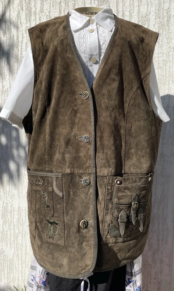• Dámská kožená vesta v selském, mysliveckém stylu ve. 44