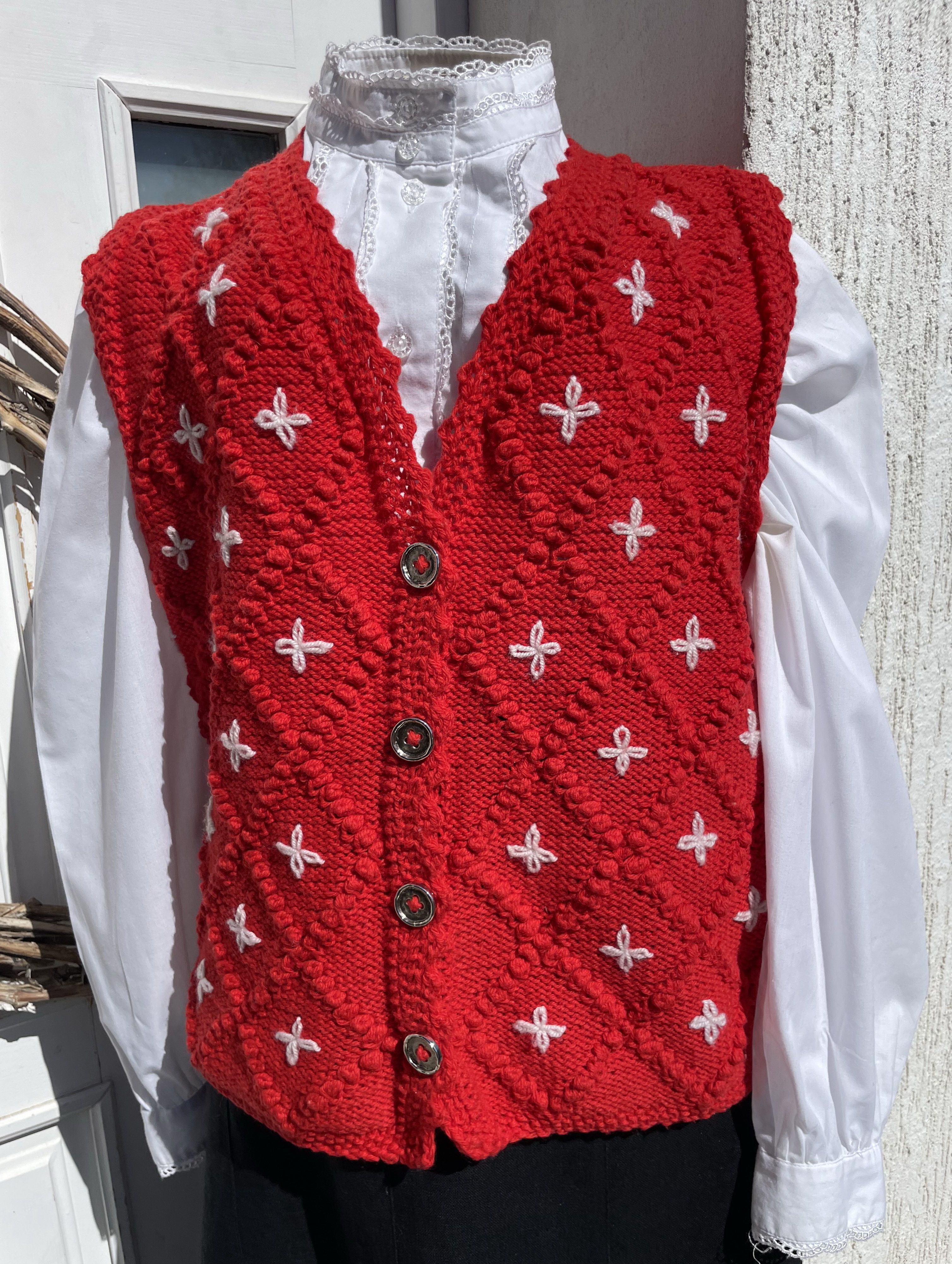 Červená vesta v pěkném stavu, vel. odhaduji na 42.