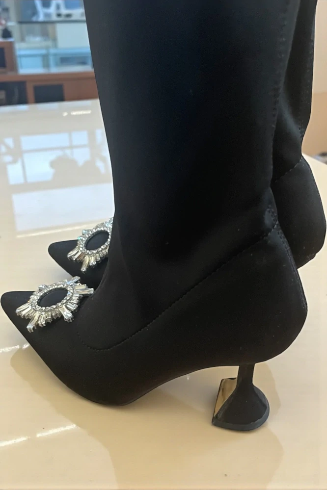 Černé látkové boty na podpatku, málo nošené, velmi pěkný stav, vel. 40, to neodpovídá, odhaduji na vel. 39, odhaduji na cca 25 cm max.