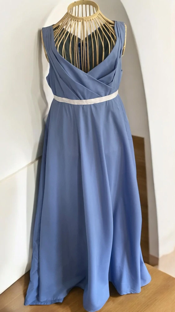 Dámské šaty v modré barvě, vzadu zip, jemná matná chladivá látka, zachovalé, vel. odhaduji na 36/38