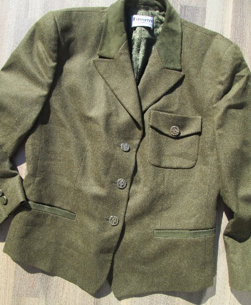 zelené sako, jemné, vlněné, lehčí, podšívka, super stav vel. odhaduji na 42, délka 60,5cm, šíře přes prsa 54cm, délka rukávu 57cm celý popis