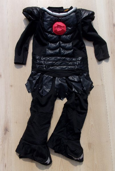 černý overal s polstrováním, části jsou koženkové, pěkný stav, vel. odhaduji na 5-7 let, délka k patě 94,8cm, šíře přes prsa 35,5cm, délka rukávu 41cm celý popis