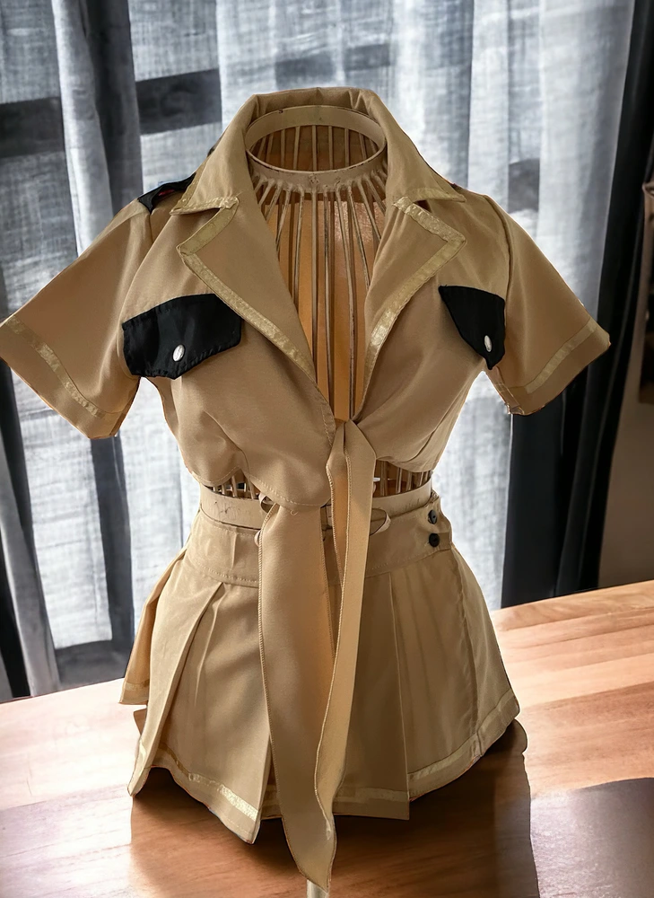 dvoudílný kostým v super stavu, vel. odhaduji na 36/38 top - délka 28cm, šíře přes prsa 42cm sukně - pas šíře 40cm, délka 26,5cm celý popis