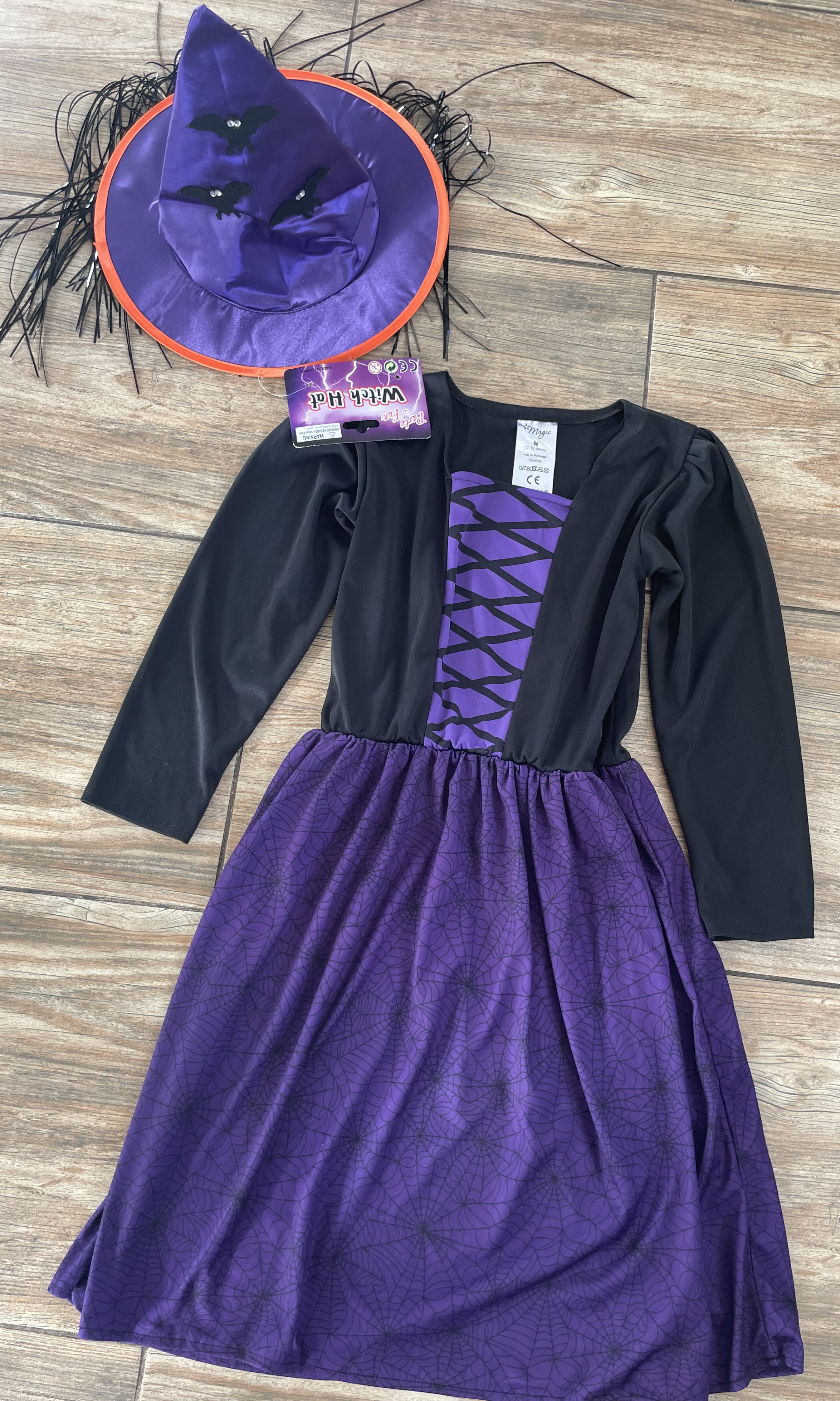 • Karnevalový kostým šaty + klobouk čarodějnice vel. 7-10 let