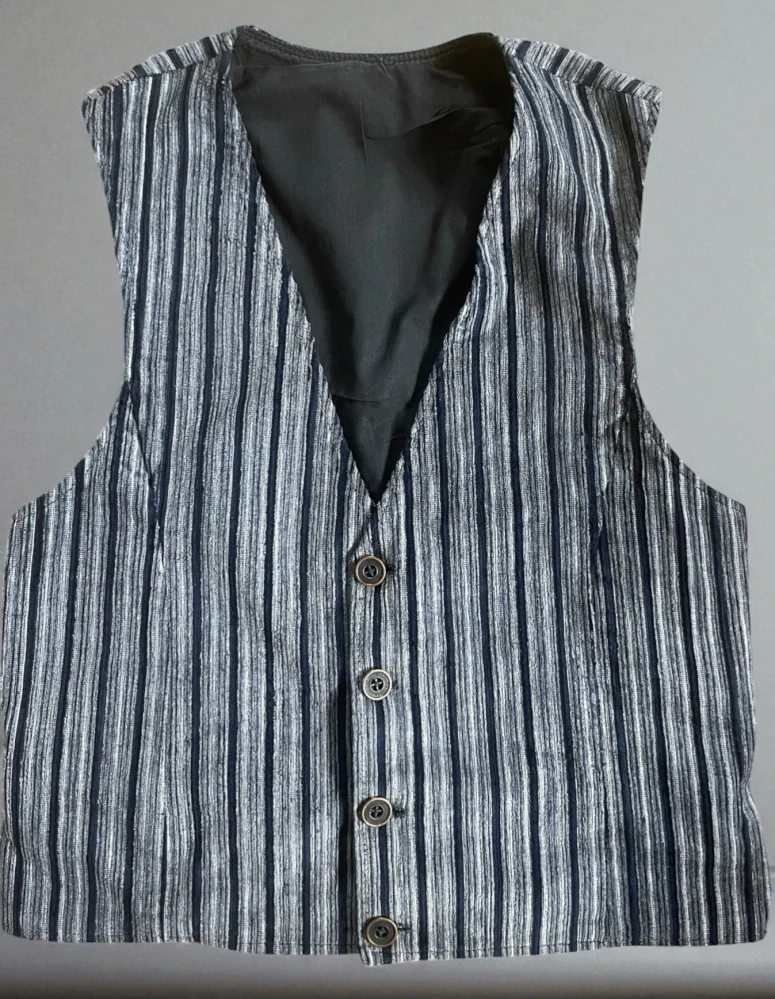 Pánská manžestrová vesta, černo-šedá, šitá na divadlo, zachovalá, vel. odhaduji na M