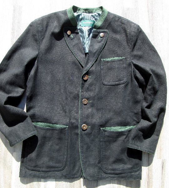 černé, lněné sako se zelenými částmi, kostěné knoflíky, podšívka, super stav, vel. odhaduji na L, délka 78,1cm, šíře přes prsa 61,5cm, délka rukávu 65cm