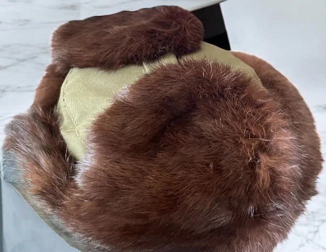 Pravá kožešina, khaki látka, nahoře zapínání na knoflík, kvalitní, autentická, na obvod cca 55-57 cm celý popis